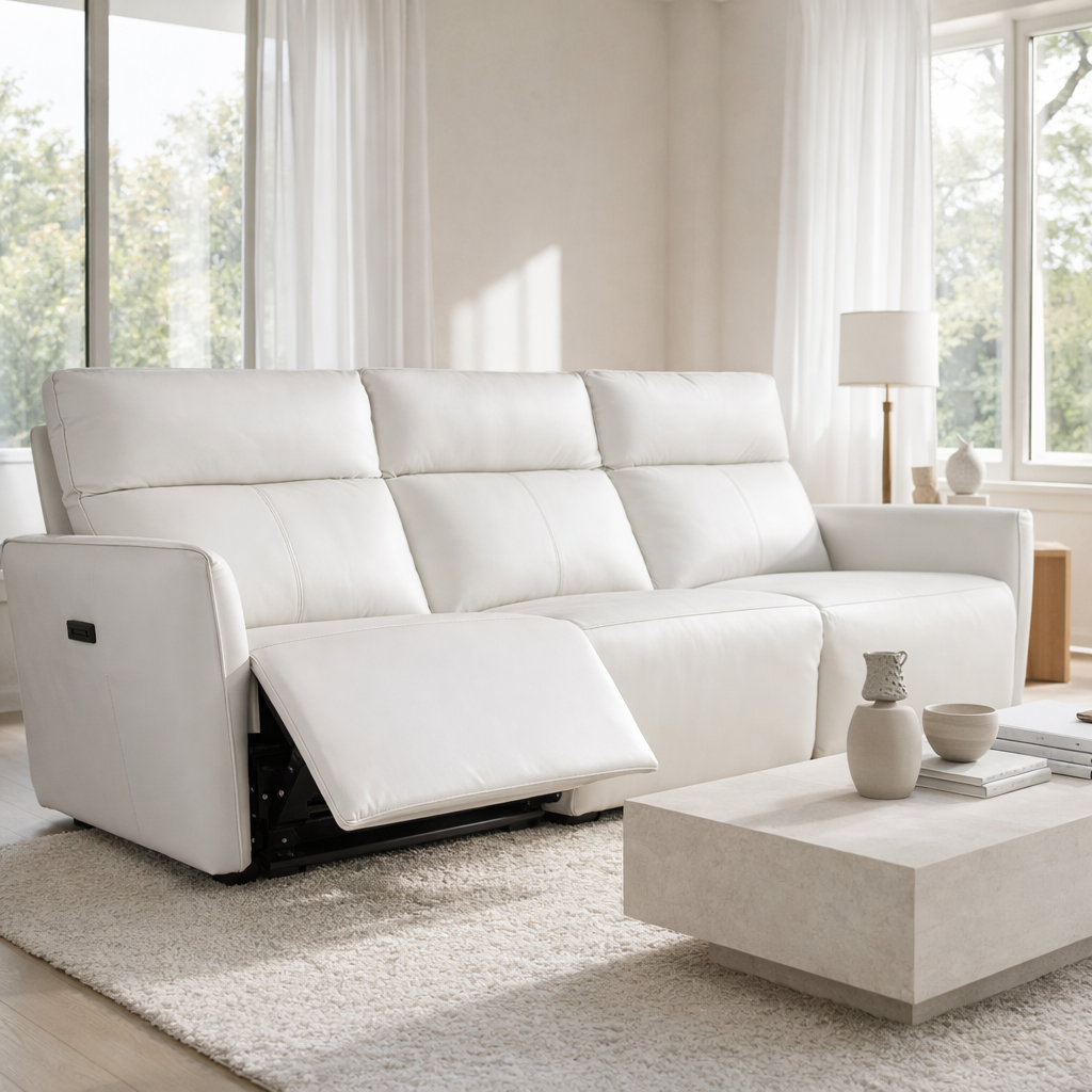 The Model 2392 leather recliner sofa is designed for modern homes that value both comfort and clean aesthetics. Its streamlined silhouette and smooth leather upholstery create a refined look that fits seamlessly into contemporary interiors.